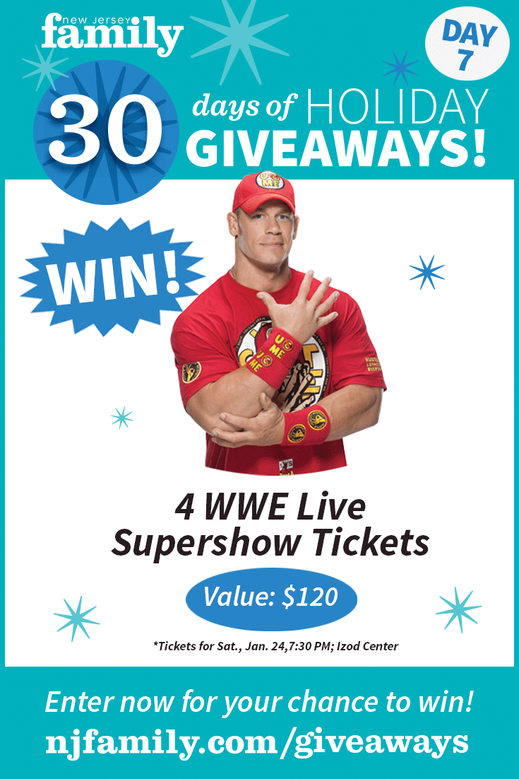 HomeTRENDING 30 Days of Holiday Giveaways – Day 7 Enter our 30 Days of Holiday Giveaways contest for a today's prize - 4 WWE Live Supershow Tickets December 7, 2014 Share FacebookTwitterPinterest *Users must have a Facebook account in order to enter. TagsCommunity Share FacebookTwitterPinterest Subscribe to Our Newsletter! Get fun things to do in NJ delivered straight to your inbox. Email Address Latest articles Jersey Shore The Best New Jersey Boardwalks for Families, According to Travel & Leisure Spring Fun Find Out When To See The Cherry Blossoms at This New Jersey Park More from NJ Family World Cup World Cup Fan Festivals Are Coming to 5 NJ Towns Ahead of MetLife Matches World Cup The Messi Experience Is Coming to American Dream in East Rutherford Easter Best Easter Brunch Spots in NJ for 2026: Where to Go Near You TRENDING See Photos of the Historic 2026 Blizzard That Buried New Jersey