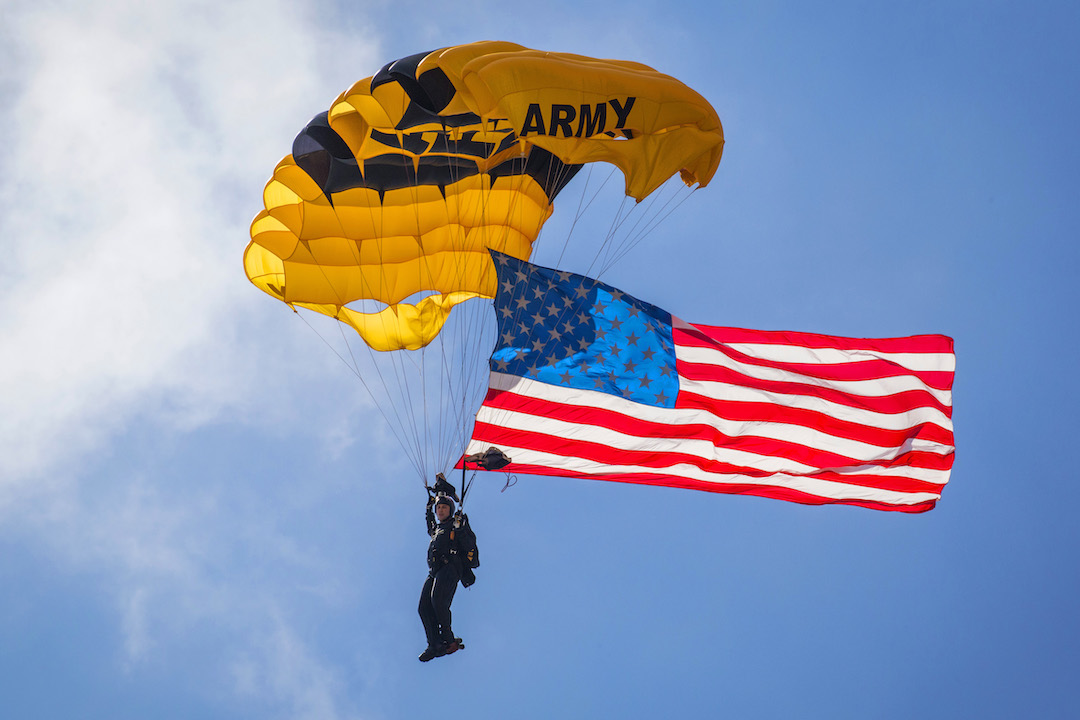 - 12 pm National Anthem with Army Golden Knights Flag Jump