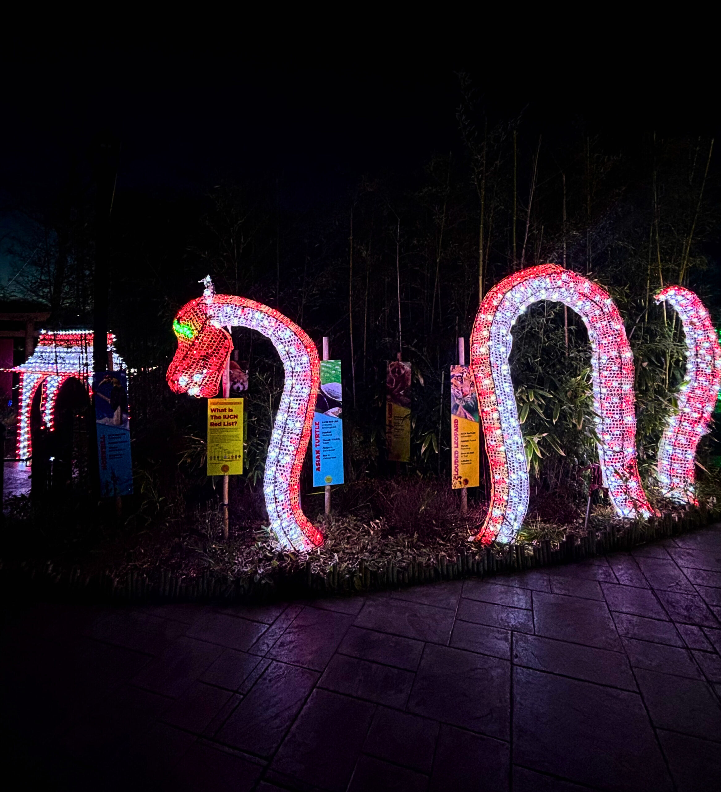As you walk through the zoo or ride on the train, you’ll see 30 larger-than-life scenes decorated with animal-themed lanterns.