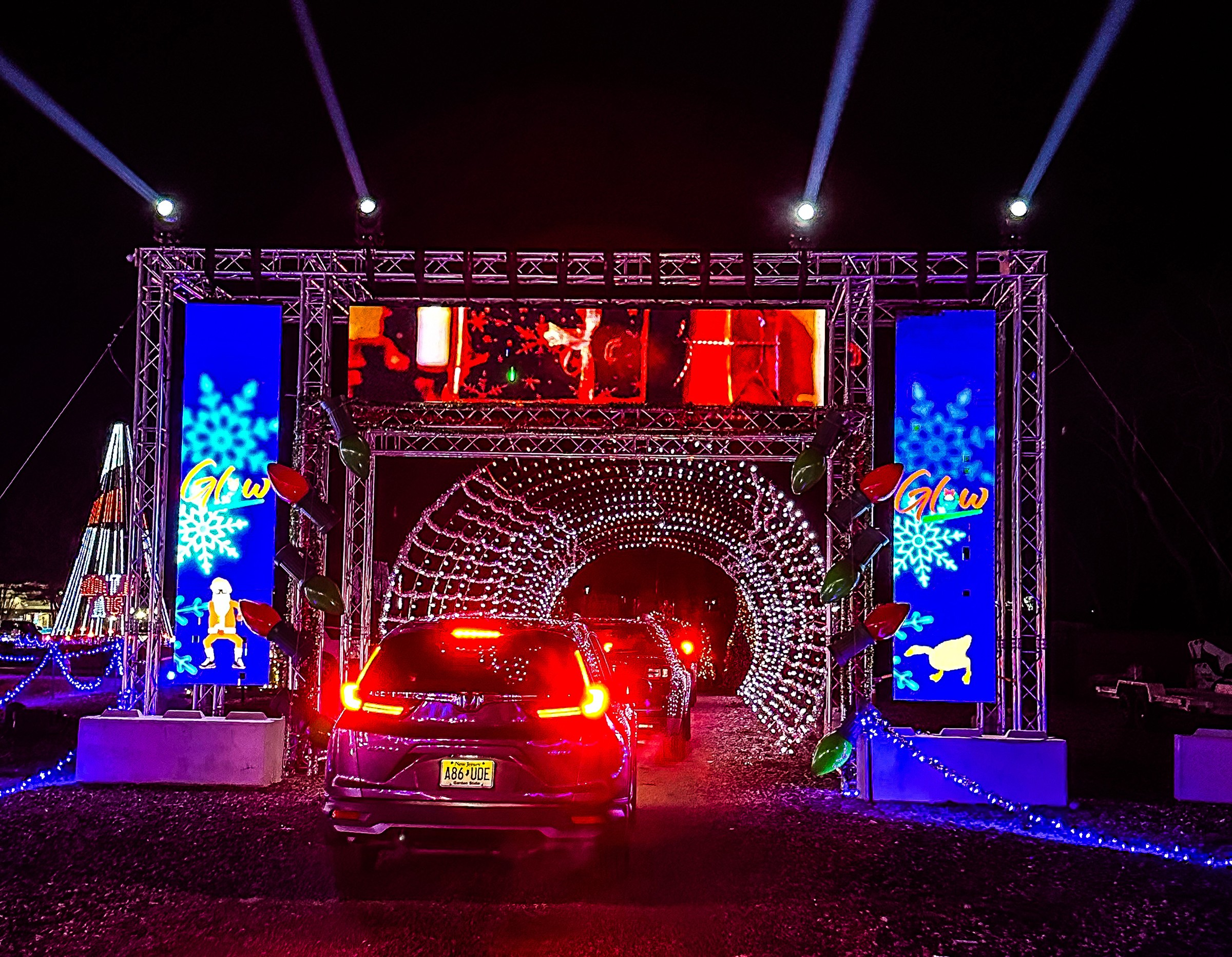 The drive-thru experience has 2 million lights over the course of one mile. The displays are synched to music that you broadcast through your car radio. This year’s theme is Tinsel Turnpike, paying homage to all things Jersey.