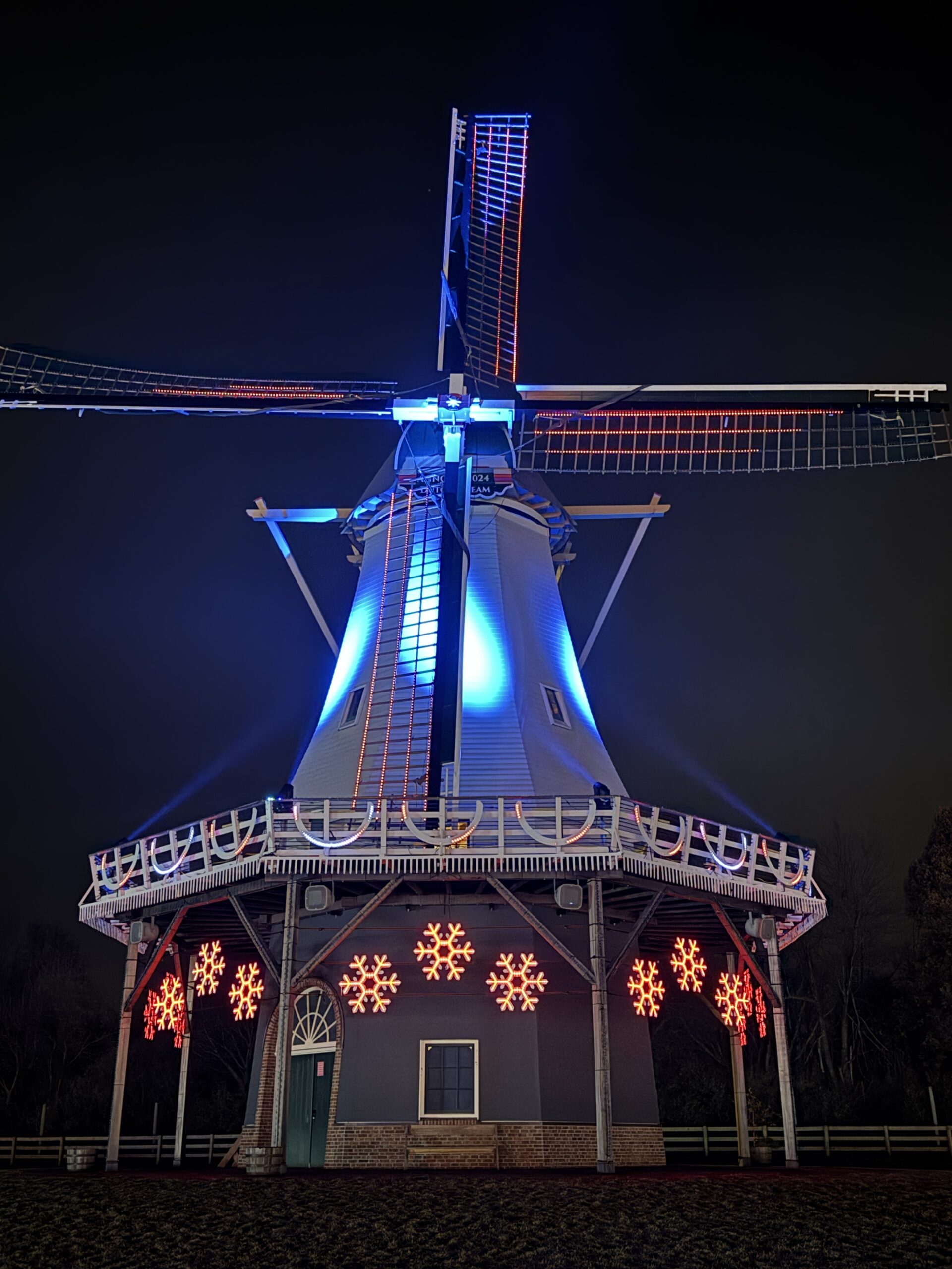 The walk-through event has more than 50,000 illuminated tulips lighting up the flower fields, a light show from the windmill; illuminated pony rides on the weekends; interactive LED seesaws, swings, spinners and slides; photo ops with Santa inside his workshop; character meet-and-greets with Olaf, Elsa and The Grinch; magical snow flurry stations; and “snowball fights” inside a giant igloo snowball pit.