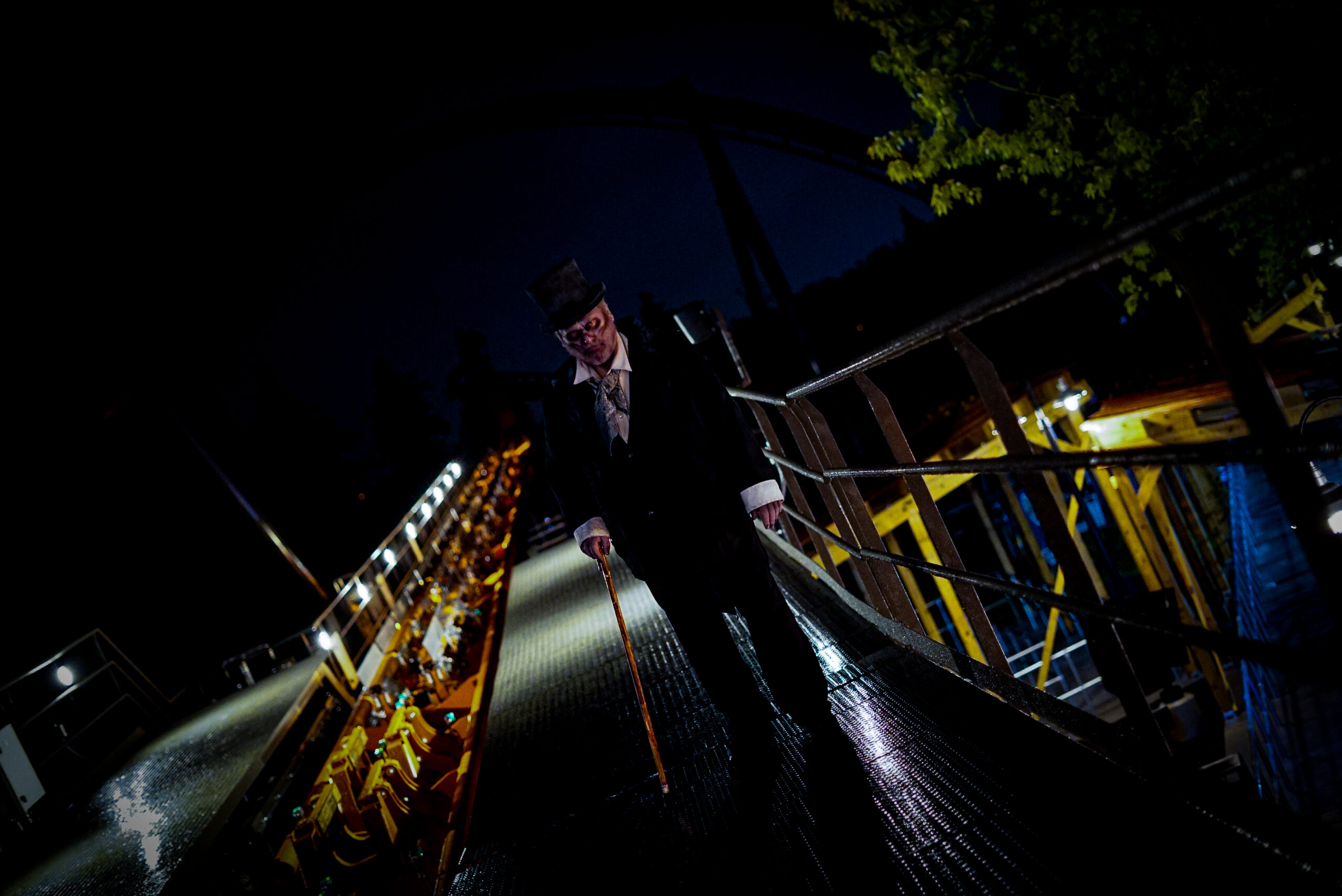 The park’s annual fright night event, Halloween Haunt, includes seven haunted mazes: The Ghost in the Machine (an abandoned steel factory), Tourist Trap (World’s Fair hotel), Blood on the Bayou (the French Quarter), Trick or Treat (witches’ creekside house), Blackout (a dark, eerie shadow world), Necropolis (undead spirits living beneath Dorney Park), and Roadside Stop and Chop (roadside jam shop).