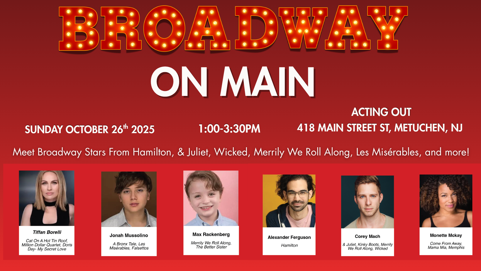 The event is being hosted by Acting Out, located at 418 Main Street, a performing arts studio that recently opened in Metuchen.