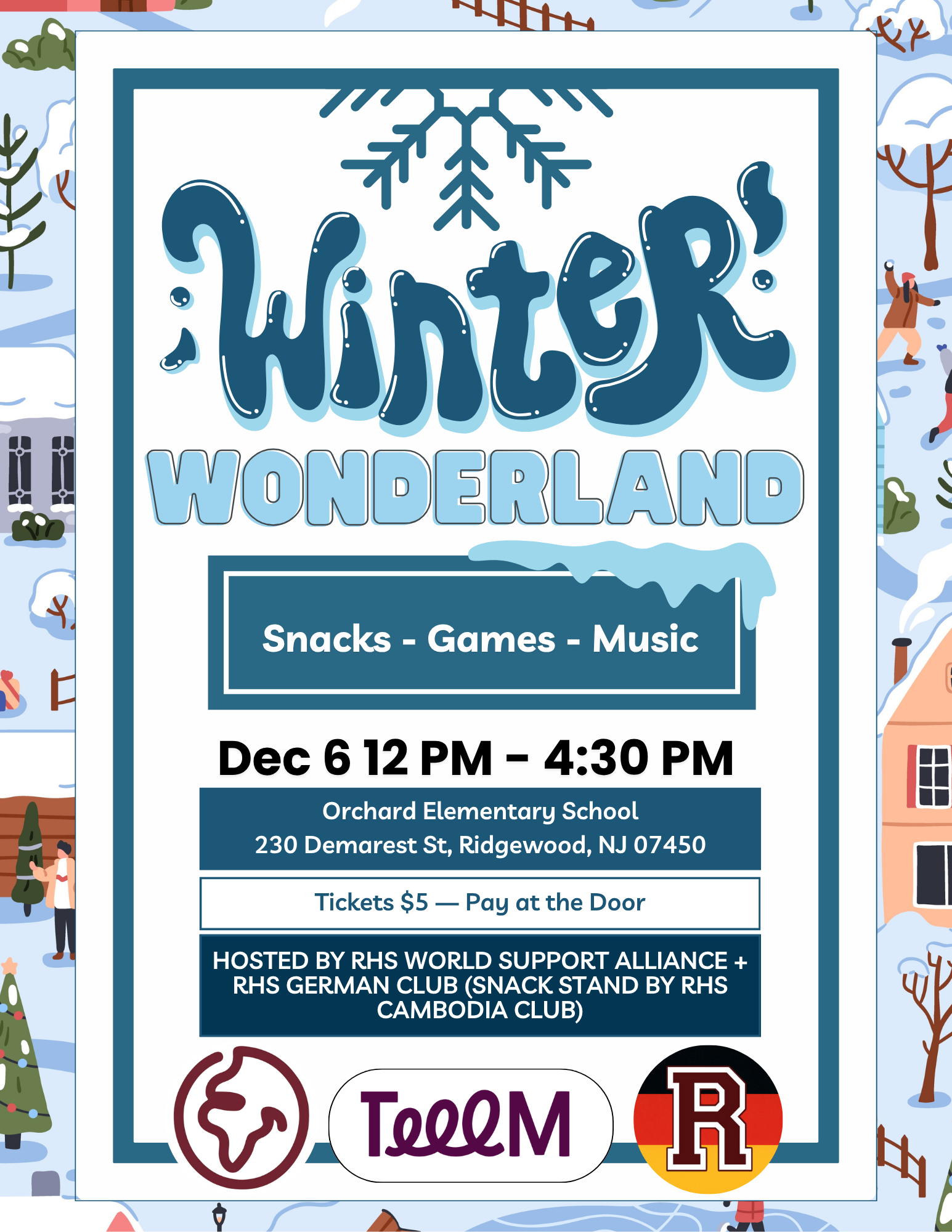 There will be snacks, games and music at this event hosted by the RHS World Support Alliance, RHS Cambodia Club, and RHS German Club.