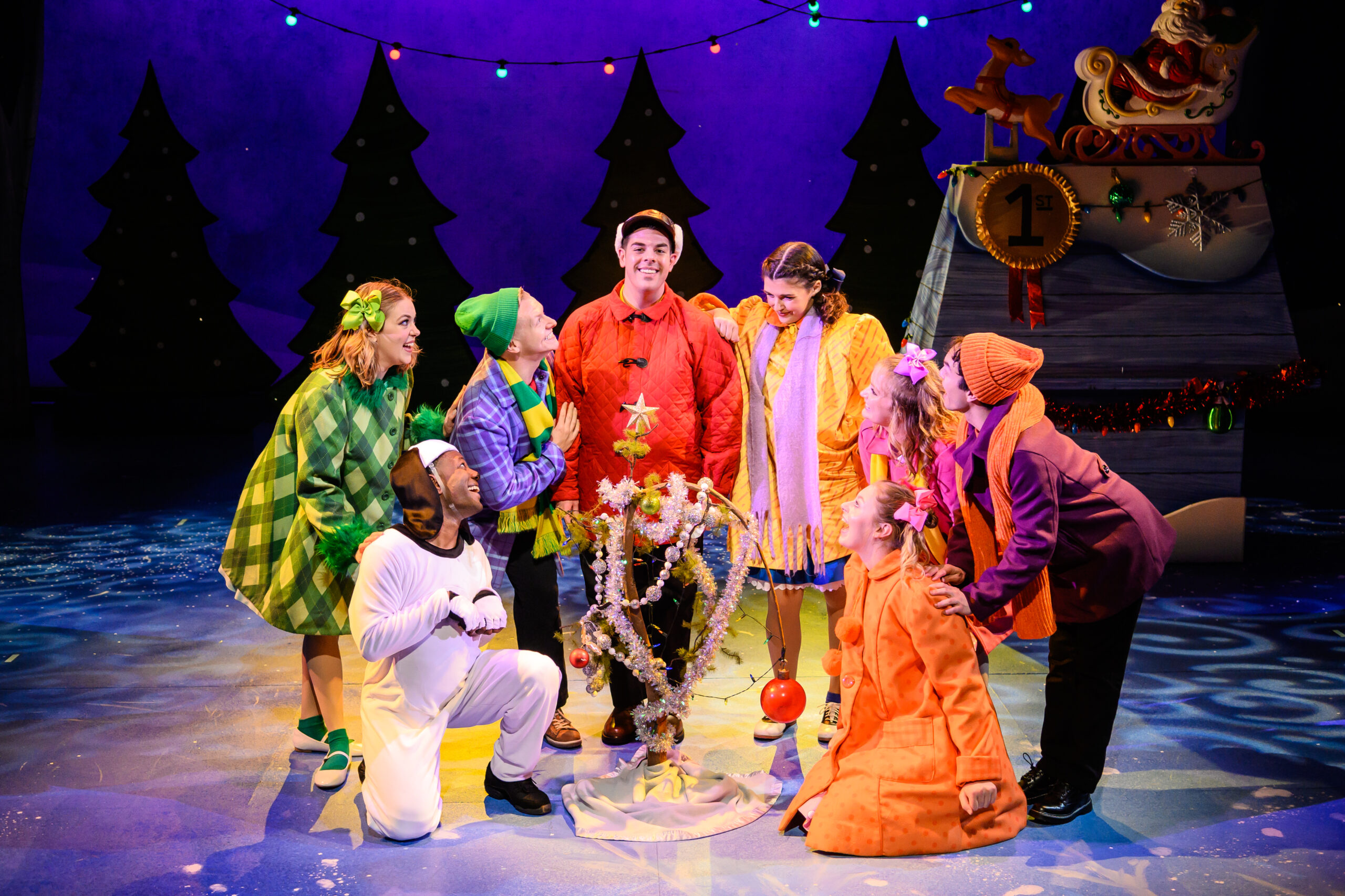 The Peanuts gang reenacts scenes from the original animated TV show. The cast comes out after the show to sing traditional Christmas carols.