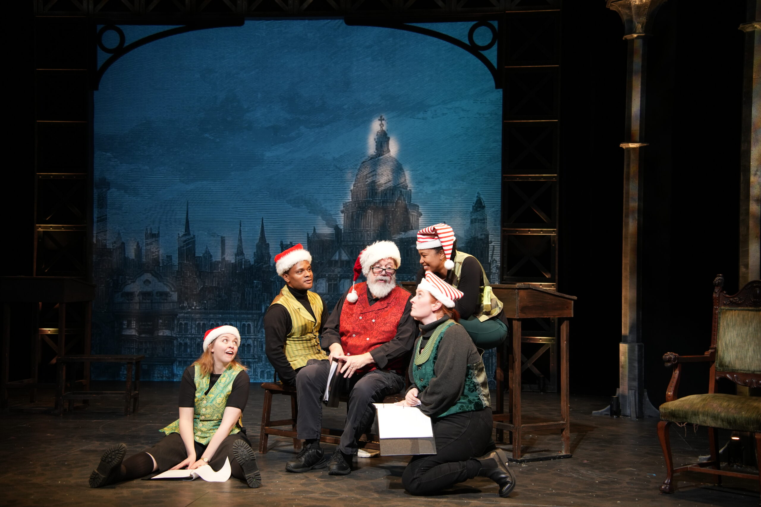 The different acts include kids writing letters to Santa, Kris Kringle getting ready for Christmas deliveries, and the elves accidentally ripping Santa’s bag at the last minute. Scrooge, Tiny Tim, and the Ghost of Christmas Future will make cameos.