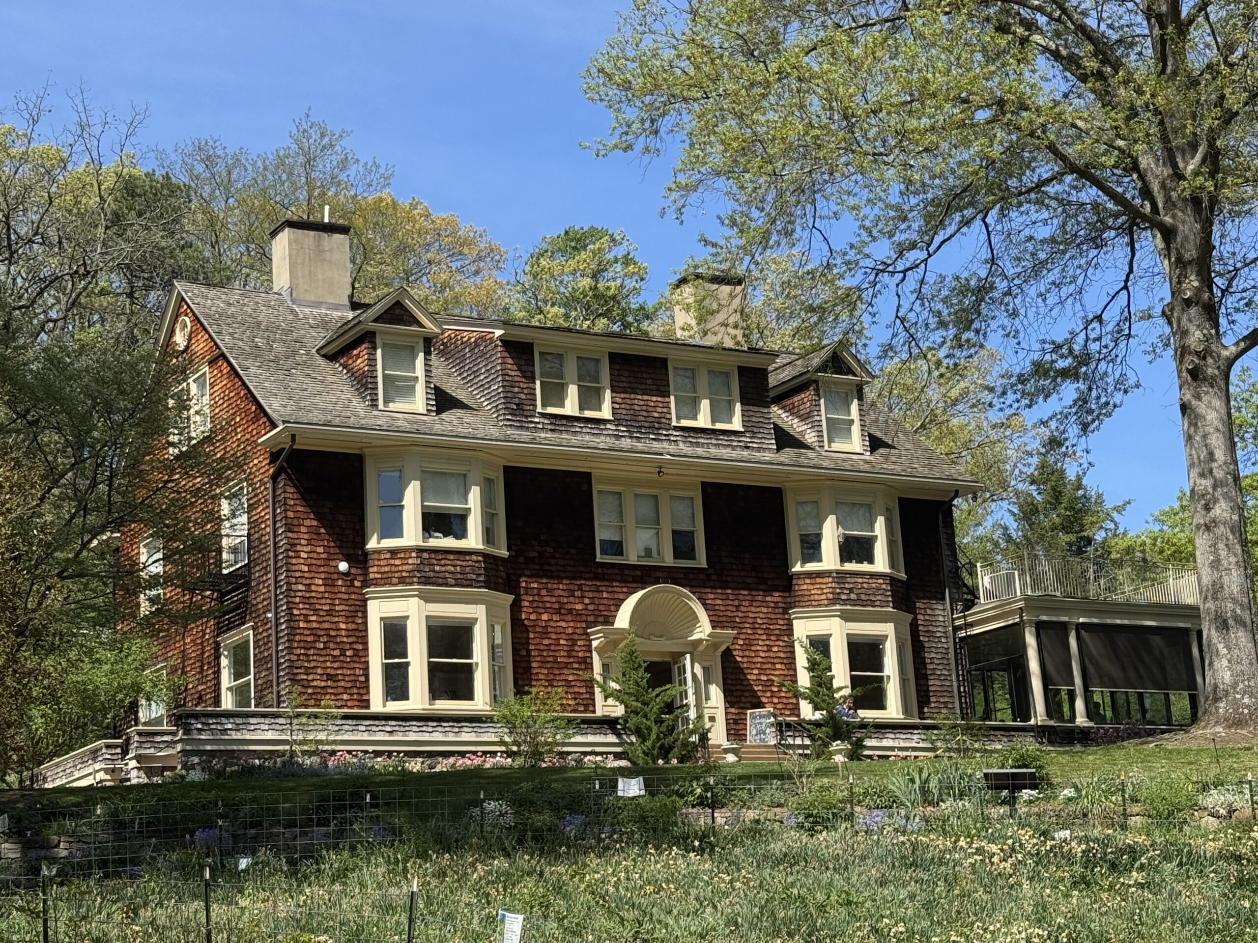 There are two entrances, both of which lead you along a marked trail. One winds around a section with 50,000 daffodils (they bloom every year in early April and are celebrated with a huge festival) while the other takes you along the Hiking Through History Wildflower Trail. Amidst all the greenery, you’ll see roses, azaleas, primroses, herbs and other perennials, one more colorful than the next.