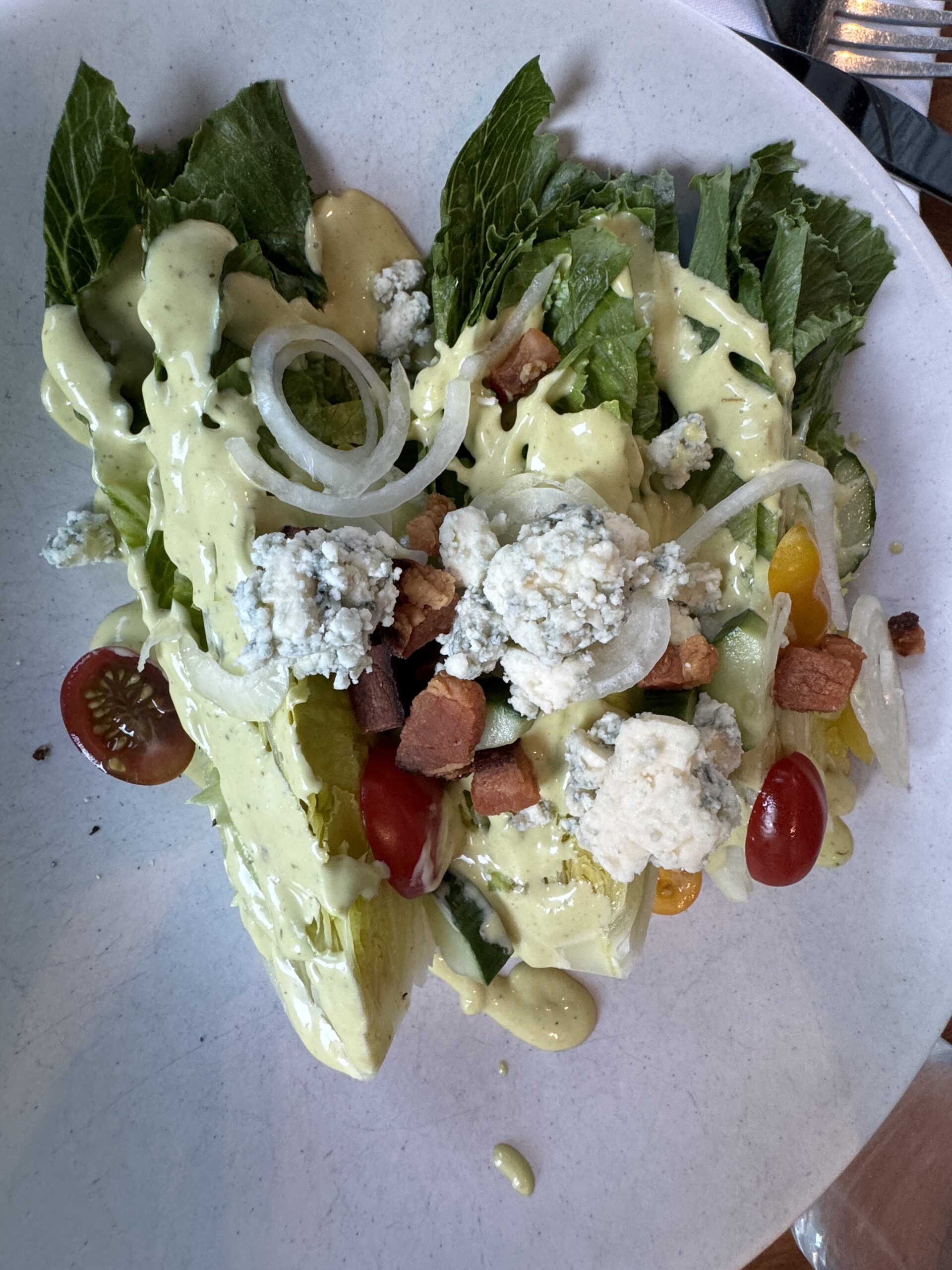 The wedge salad and meatballs are great for starters. There’s an extensive wine list, too.