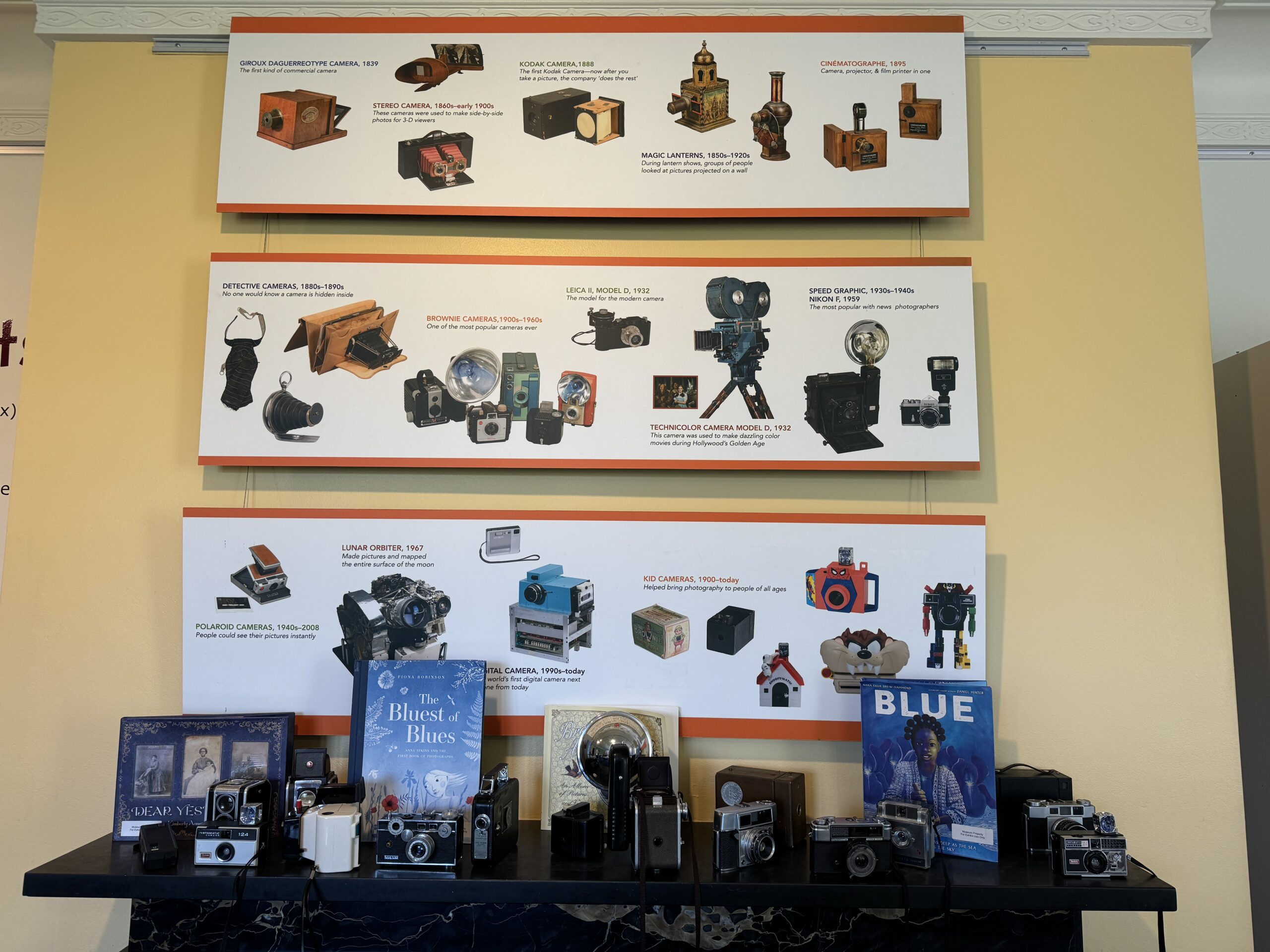Then head to the opposite side of the building where you can peruse the hallway of exhibits dedicated to the enhancement of the camera over the years. There are models dating back to 1888, some of which are 6 feet tall. One wall has a display of over 3,000 dye bottles from the Motion Picture Association, while another has 62 movie posters from the 1960s.