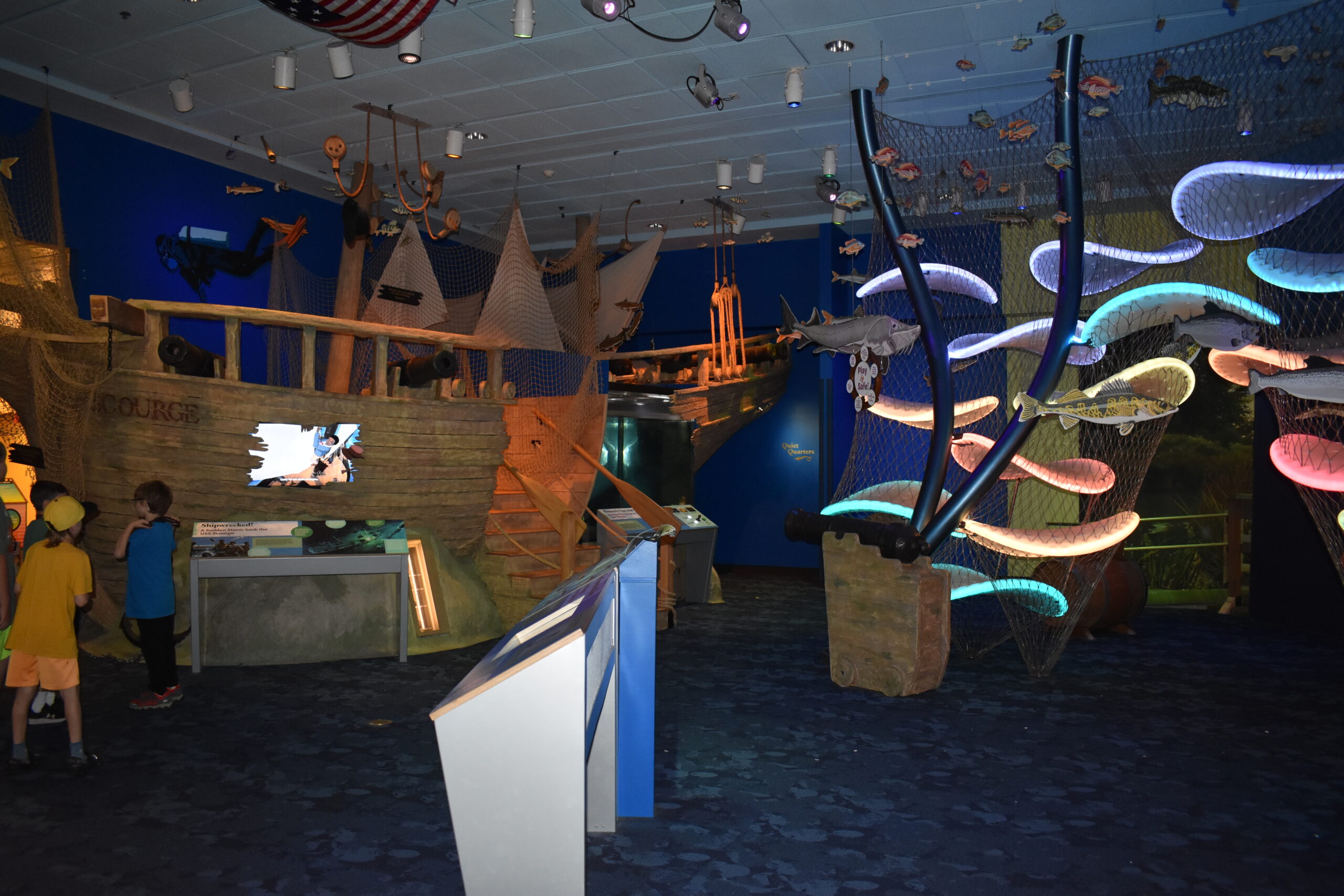 Upstairs is a gallery of hands-on exhibits where you can look, hear and touch objects that simulate sound and light waves. And you can also see real-time satellite data from NASA and NOAA.