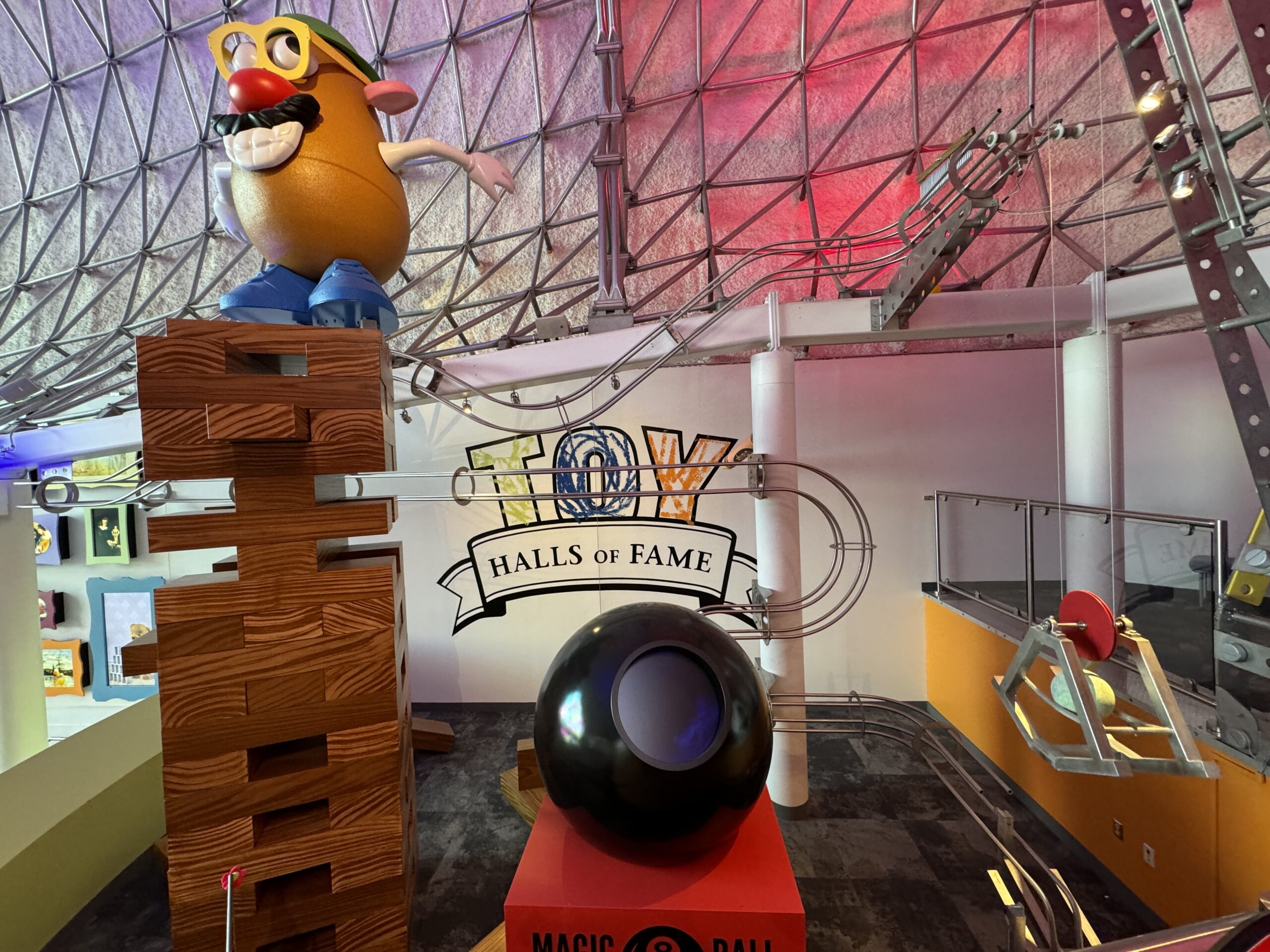 The second floor is packed with activities for teens and adults, ranging from historic exhibits of dolls and toys to a virtual reality space to the world’s largest playable Donkey Kong. One room has interactive stations where you can play dodgeball or create your own avatar. Another room has large screens above your head so you can play Sonic or Mario Bros. in real time. There are also not one but two Toy Halls of Fame, one of which lets you vote for your favorite toys every year. You can spin the Magic 8 Ball, work a crane, or sit for a personalized Etch-a-Sketch portrait.
