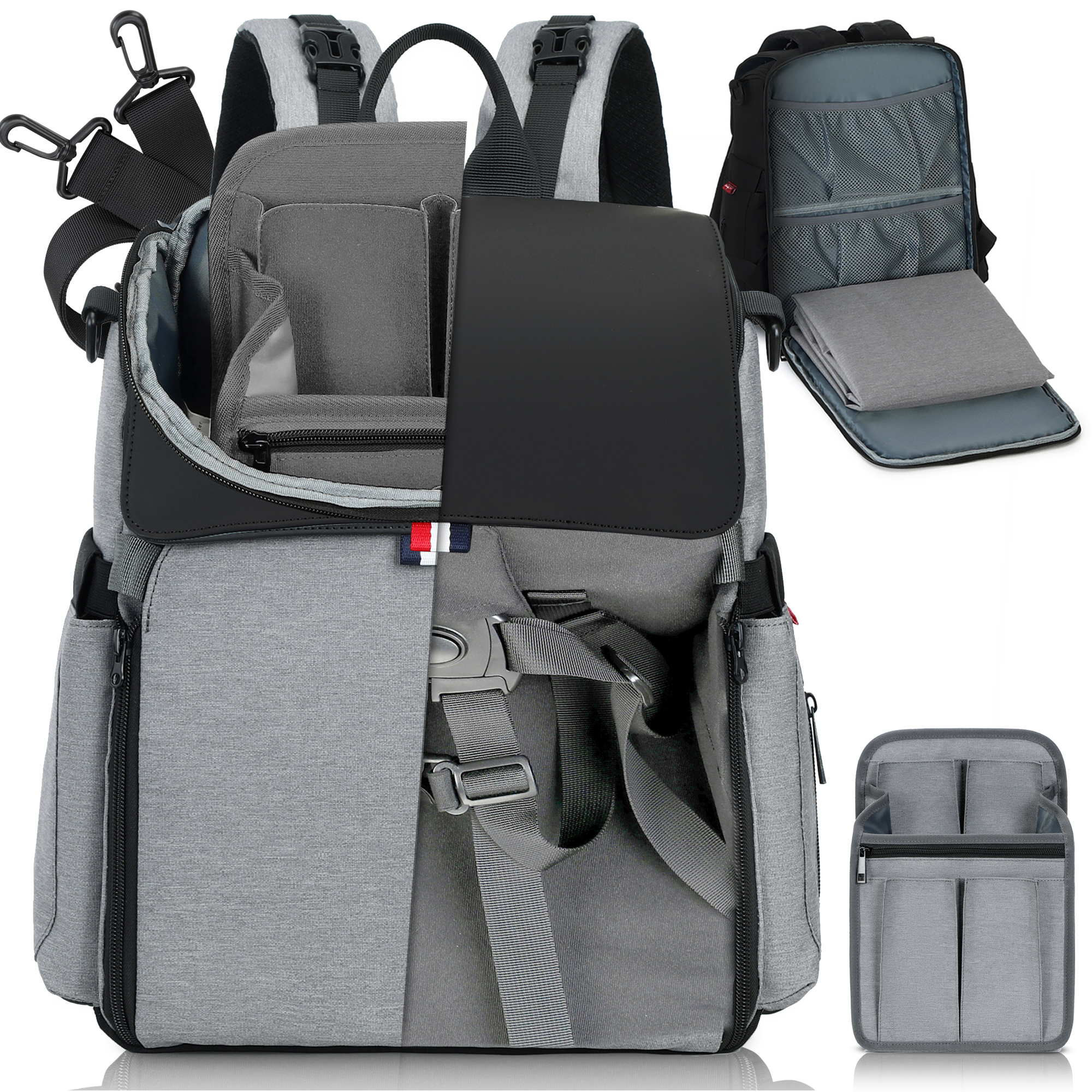 This sleek backpack converts to a portable nap and diaper changing area for baby. It has insulated bottle pockets, a five-point harness booster seat and lots of clever storage.